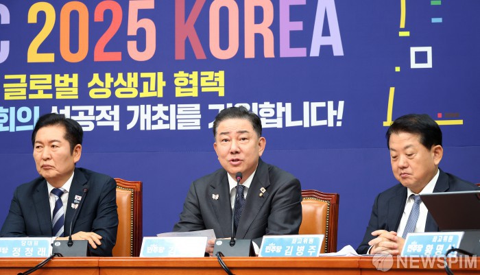 [서울=뉴스핌] 정일구 기자 = 김병기 더불어민주당 원내대표가 31일 오전 서울 여의도 국회에서 열린 최고위원회의에서 모두발언을 하고 있다. 2025.10.31 mironj19@newspim.com