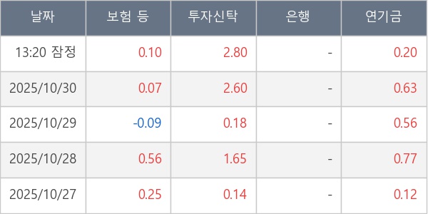 [표] 주요 기관별 순매매량 (단위 만주)