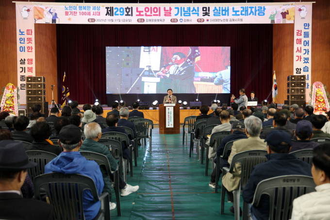 [김해=뉴스핌] 남경문 기자 = 김해시는 31일 김해문화체육관에서 어르신 650여 명이 참석한 가운데 '제29회 노인의 날 기념식 및 경로잔치'를 개최했다고 밝혔다.