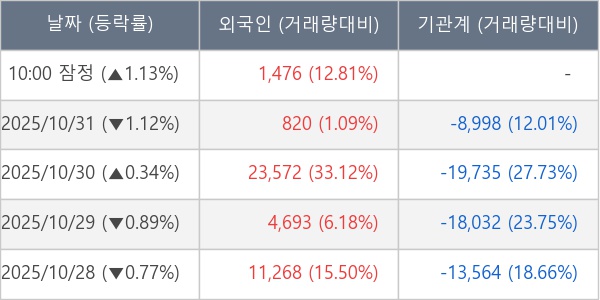 [표] 외국인ㆍ기관 순매매량 (단위 주)