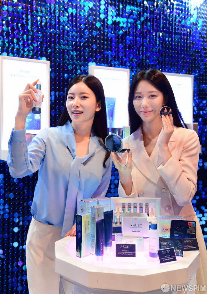 [서울=뉴스핌] 3일 서울 서초구 JW 메리어트 호텔에서 열린 제 4회 ‘재생 에스테틱 엑소좀 서밋 2025'에서 모델들이 엑소코바이오의 스킨케어 브랜드인 ‘ASCE plus’ 신제품을 선보이고 있다. [사진=엑소코바이오] 2025.11.03 photo@newspim.com