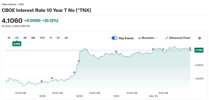 국채 약세를 부추긴 요인으로는 대형 기술기업의 회사채 발행이 꼽힌다. 메타플랫폼스(NASDAQ:META)는 지난주 사상 최대 규모인 300억달러의 회사채를 발행했고, 알파벳(NASDAQ:GOOGL)은 이날 달러·유로화 표시로 총 170억달러 규모의 무담보채 발행에 나섰다.