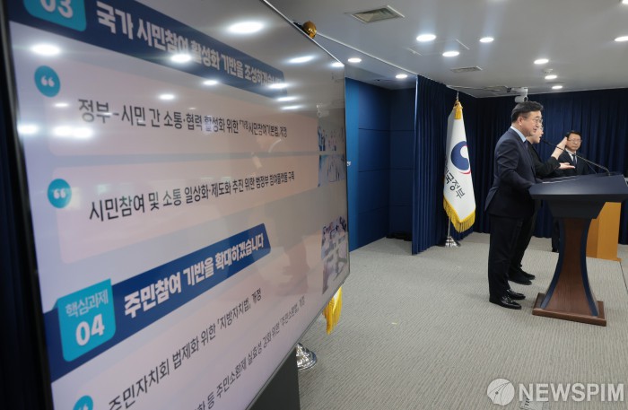 [서울=뉴스핌] 이길동 기자 = 윤호중 행정안전부 장관이 5일 서울 종로구 정부서울청사에서 기자 브리핑을 하고 있다.2025.11.05. gdlee@newspim.com