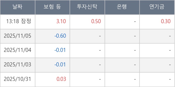 [표] 주요 기관별 순매매량 (단위 만주)