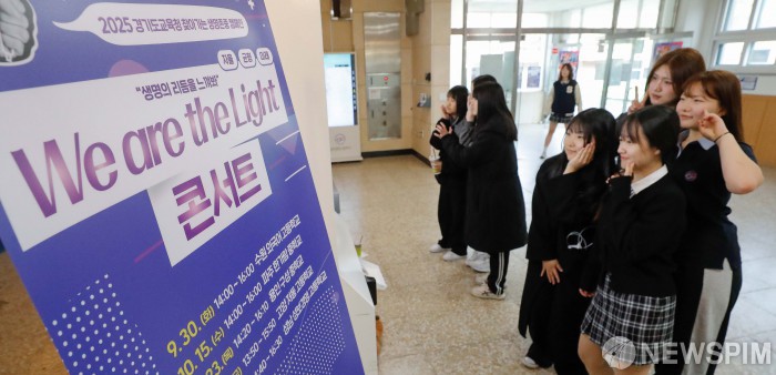 [성남=뉴스핌] 류기찬 기자 = 성보경영고등학교 재학생들이 6일 오후 경기 성남시 수정구 성보경영고등학교에서 열린 '2025 경기도교육청 찾아가는 생명존중 캠페인'에서 인생네컷 기기를 이용하여 사진을 촬영하고 있다. 2025.11.06 ryuchan0925@newspim.com