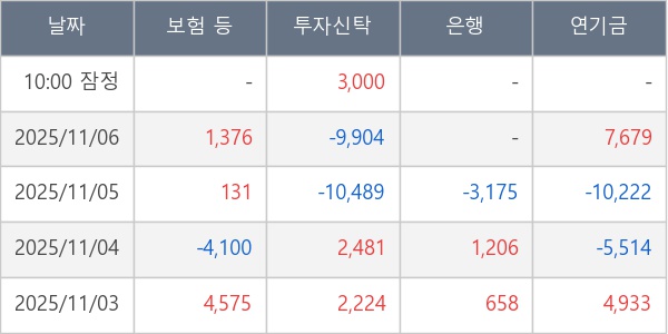 [표] 주요 기관별 순매매량 (단위 주)