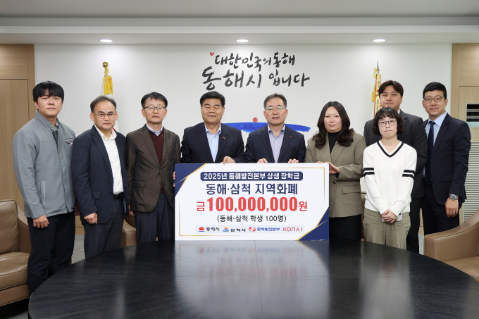 [동해=뉴스핌] 이형섭 기자 = 한국동서발전(주) 동해발전본부는 7일 동해시청에서 '2025년 동해발전본부 장학금 전달식'을 가졌다고 밝혔다.