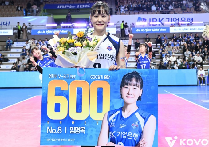 임명옥은 7일 화성종합체육관에서 열린 2025-2026 V리그 여자부 흥국생명전에서 선발 리베로로 나섰다. 직전 경기까지 599경기를 뛴 그는 여자부 선수로는 처음으로 600경기 출장 기록을 남겼다. 2005년 V리그 출범 이후 정규리그 600경기 이상을 소화한 선수는 남녀부를 통틀어 과거 기업은행에서 활약했던 여오현 코치(625경기)가 유일했다.