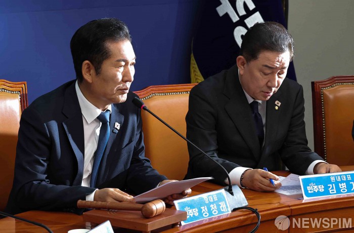 [서울=뉴스핌] 윤창빈 기자 = 정청래 더불어민주당 대표가 10일 오전 서울 여의도 국회에서 열린 최고위원회의에서 모두발언을 하고 있다. 2025.11.10 pangbin@newspim.com