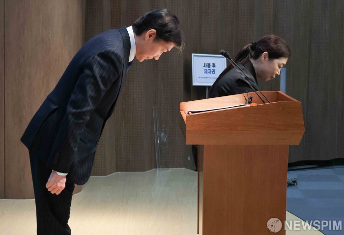 [서울=뉴스핌] 윤창빈 기자 = 조국 전 조국혁신당 비상대책위원장이 10일 오전 서울 여의도 국회에서 당대표 출마 선언을 마치고 인사하고 있다. 2025.11.10 pangbin@newspim.com