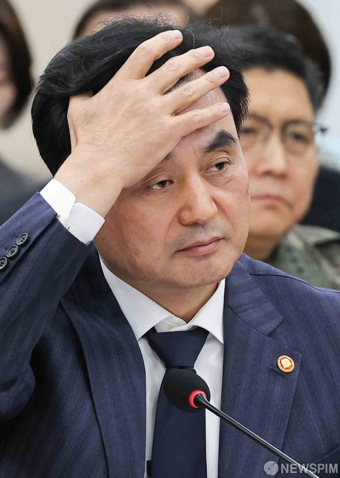 | [서울=뉴스핌] 윤창빈 기자 = 안규백 국방부 장관이 5일 오전 서울 여의도 국회에서 열린 국방위원회 전체회의에서 머리를 쓸어 넘기고 있다. 2025.11.05 pangbin@newspim.com |