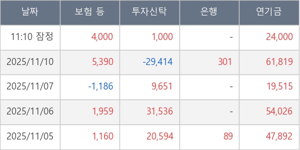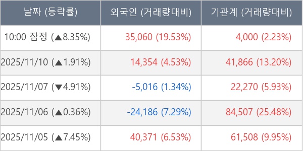 ※ 사모펀드 등 일부 기관의 순매매량은 표시되지 않음
