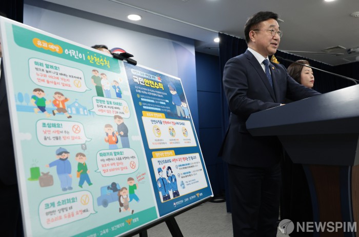 [서울=뉴스핌] 이길동 기자 = 윤호중 행정안전부 장관이 11일 서울 종로구 정부서울청사에서 열린 미성년자 약취·유인 방지를 위한 어린이 등하굣길 안전확보 종합대책 합동브리핑에 발언하고 있다.2025.11.11 gdlee@newspim.com