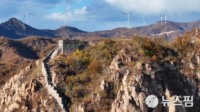 | [서울=뉴스핌] 최헌규 중국전문기자= 중국 수도 베이징 인근 허베이성 진황다오시 구간의 반창위 만리장성 부근 산에 풍력 발전 설비가 설치돼 있다. 사진= 뉴스핌 최헌규 기자 촬영. 2025.11.12 chk@newspim.com |