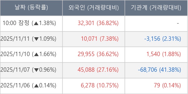 [표] 외국인ㆍ기관 순매매량 (단위 주)