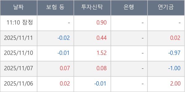 ※ 사모펀드 등 일부 기관의 순매매량은 표시되지 않음