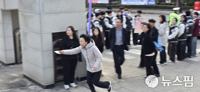 | [동해=뉴스핌] 이형섭 기자 = "빨리~ 빨리~ 수험표 들어가요~". 2025.11.13 onemoregive@newspim.com |