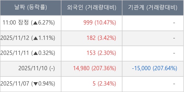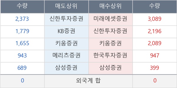 [표] 외국인ㆍ기관 순매매량 (단위 주)
