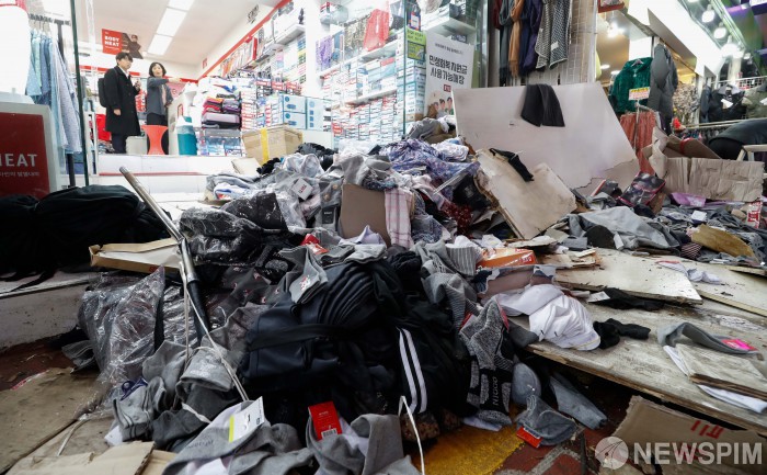 | [부천=뉴스핌] 류기찬 기자 = 13일 경기 부천시 오정구 제일시장에서 A씨가 몰던 1톤 트럭이 돌진하는 사고가 발생한 가운데 사고 현장이 처참한 모습을 보이고 있다. 2025.11.13 ryuchan0925@newspim.com |