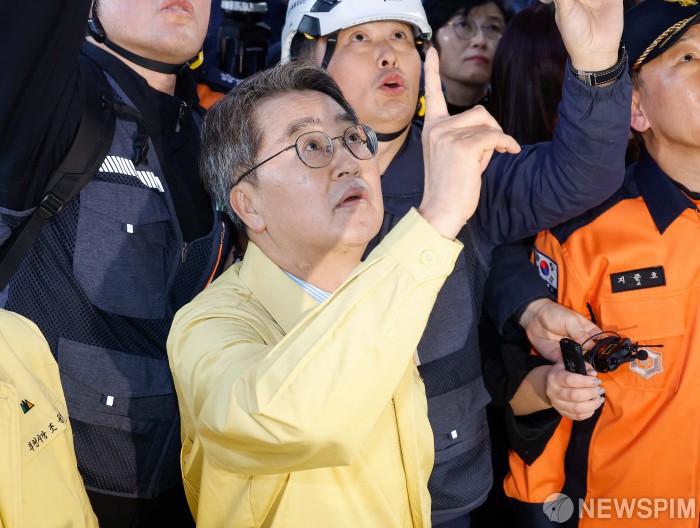 [부천=뉴스핌] 류기찬 기자 = 김동연 경기도지사가 13일 오후 경기 부천시 오정구 제일시장 사고 현장에 방문해 피해 상점들을 점검하고 있다. 2025.11.13 ryuchan0925@newspim.com
