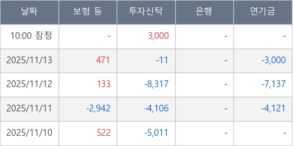 [표] 주요 기관별 순매매량 (단위 주)