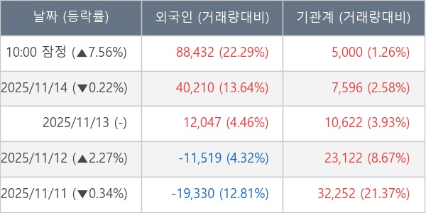 ※ 사모펀드 등 일부 기관의 순매매량은 표시되지 않음