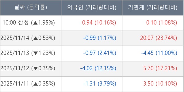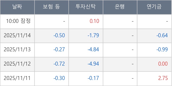 [표] 주요 기관별 순매매량 (단위 만주)