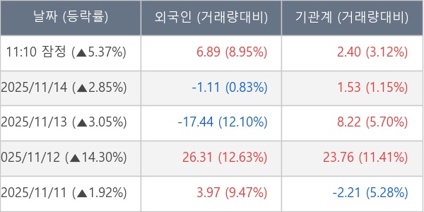 ※ 사모펀드 등 일부 기관의 순매매량은 표시되지 않음
