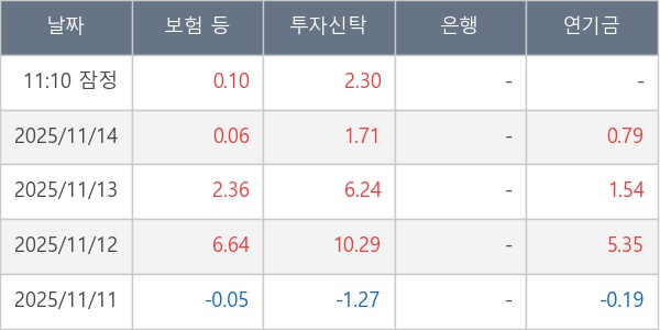 [표] 주요 기관별 순매매량 (단위 만주)
