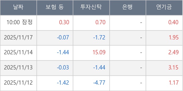 [표] 주요 기관별 순매매량 (단위 만주)