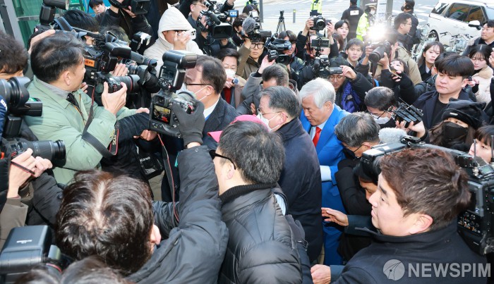 [서울=뉴스핌] 김학선 기자 = 서울서부지법 폭력 난동 사태의 배후로 지목돼 온 전광훈 사랑제일교회 목사가 18일 피의자 신분으로 서울경찰청에 출석하고 있다. 2025.11.18 yooksa@newspim.com