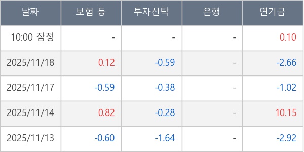 [표] 주요 기관별 순매매량 (단위 만주)