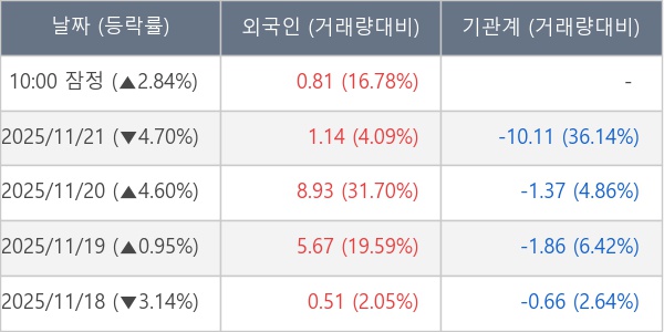 [표] 외국인ㆍ기관 순매매량 (단위 만주)