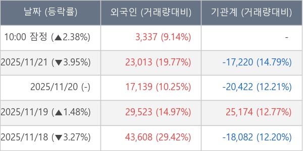 [표] 외국인ㆍ기관 순매매량 (단위 주)