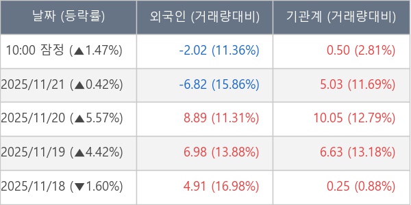 ※ 사모펀드 등 일부 기관의 순매매량은 표시되지 않음