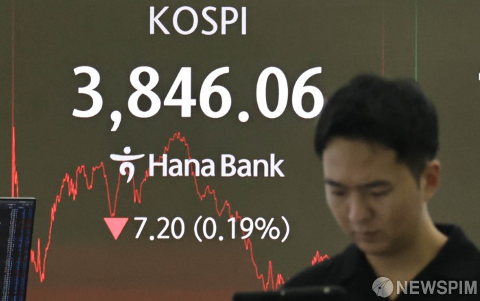 [서울=뉴스핌] 양윤모 기자 = 24일 오후 코스피가 전장 종가보다 7.20 포인트(0.19%) 하락하며 3846.06으로, 코스닥은 7.51 포인트(0.87%) 하락한 856.44로 장을 마감한 가운데, 서울 중구 하나은행 딜링룸에서 직원들이 업무를 보고 있다. 서울외환시장에서 달러/원 환율은 전장 대비 0.60원 상승한 1476.20원에 주간거래를 마감했다. 2025.11.24 yym58@newspim.com