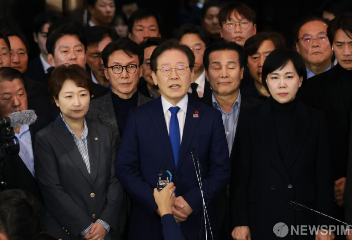 | 이재명 더불어민주당 대표가 4일 새벽 서울 여의도 국회에서 비상계엄 해제 요구 결의안 통과 후 발언을 하고 있다. 2024.12.04 leehs@newspim.com |