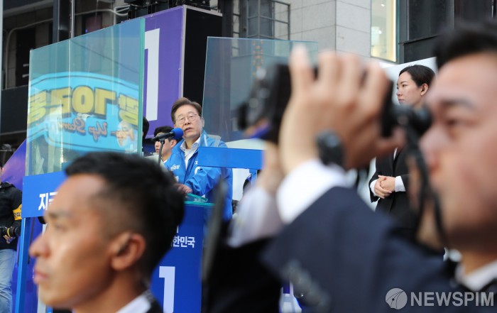 이재명 후보에 대한 지속적인 테러 위협에 민주당은 유세현장에 방탄 유리막을 설치하고 이재명 후보는 방탄복을 입는 등 신변 보호에 열을 올렸다. 경찰 역시 이재명 후보를 비롯한 대선 후보들에 대한 경호를 대폭 강화했다. 폭발물 탐지견이 유세 현장에 투입돼 폭탄물 등을 미리 검색했고 드론 테러에 대비하기 위한 전파탐지기와 재밍건 등 특수장비도 투입됐다.
