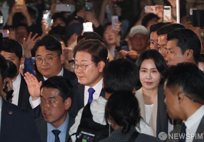 | 제21대 대통령 선거에서 당선이 확실시 되는 이재명 더불어민주당 대선 후보가 3일 밤 인천 계양구 귤현동 자택을 나와 주민들과 지지자들에게 인사하고 있다. 2025.06.03 yooksa@newspim.com |