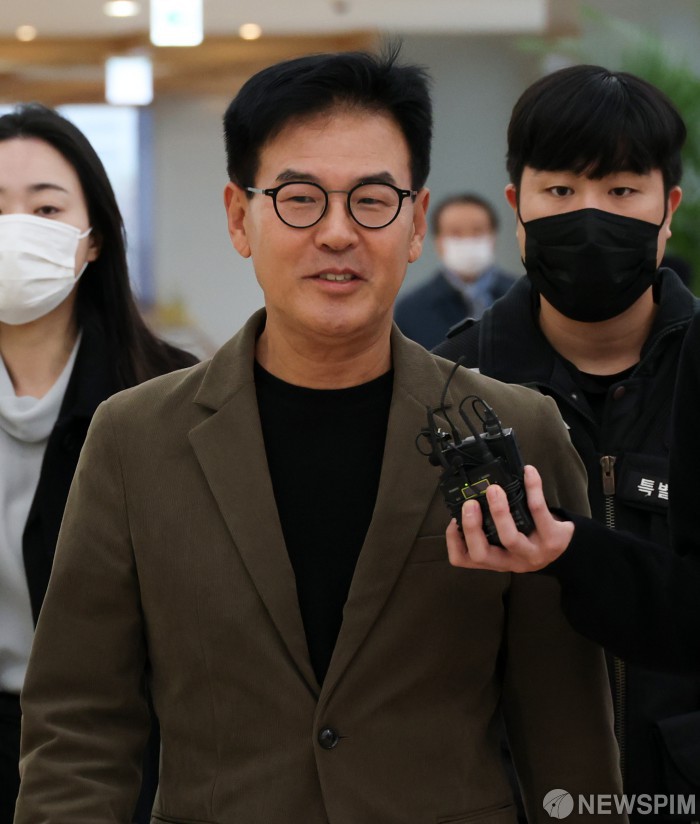 [서울=뉴스핌] 최지환 기자 = 강철원 전 서울시 정무부시장이 오세훈 서울시장의 여론조사비 대납 의혹과 관련해 25일 오전 서울 종로구 KT 빌딩에 마련된 김건희특검 사무실에 피의자 신분으로 출석하고 있다. 2025.11.25 choipix16@newspim.com