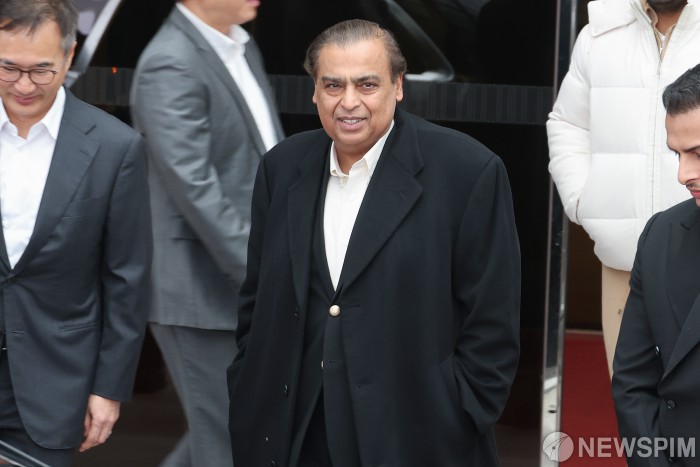[서울=뉴스핌] 류기찬 기자 = 무케시 암바니 릴라이언스 그룹 회장이 25일 오전 서울 강서구 서울김포비즈니스항공센터를 통해 입국하고 있다. 2025.11.25 ryuchan0925@newspim.com