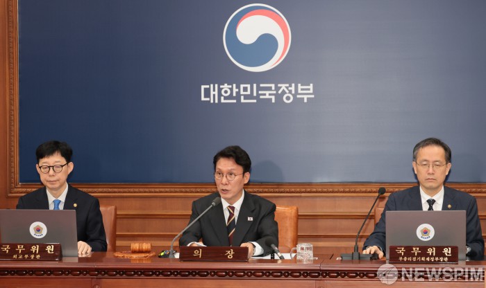 [서울=뉴스핌] 이길동 기자 = 김민석 국무총리가 25일 서울 종로구 정부서울청사에서 열린 국무회의를 주재하며 모두 발언을 하고 있다. 2025.11.25 gdlee@newspim.com