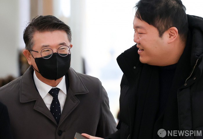 [서울=뉴스핌] 최지환 기자 = 장상윤 전 교육부 차관이 25일 오전 서울 종로구 KT 빌딩에 마련된 김건희특검 사무실에 참고인 신분으로 출석하고 있다. 장 전 차관은 김 여사의 '종묘 차담회 의혹'과 '비서관 자녀 학폭 무마 의혹'과 관련해 조사를 받는 것으로 알려졌다. 2025.11.25 choipix16@newspim.com