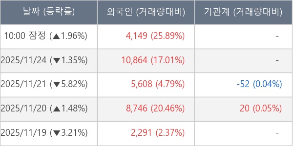 [표] 외국인ㆍ기관 순매매량 (단위 주)