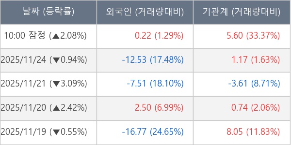 [표] 외국인ㆍ기관 순매매량 (단위 만주)