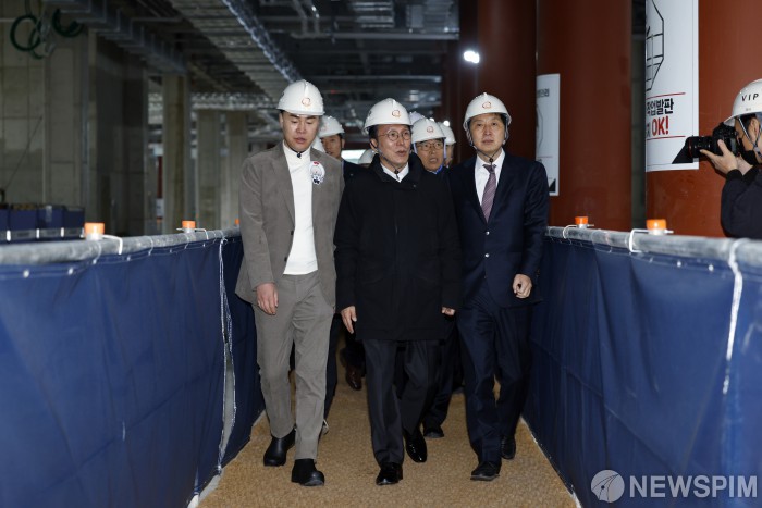 [서울=뉴스핌] 청사사진기자단 = 김민석 국무총리가 25일 서울 도봉구 창동 서울아레나 복합문화시설 건립 현장점검을 위해 이동하고 있다. 2025.11.25 photo@newspim.com