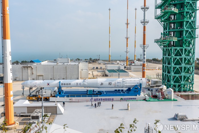 [서울=뉴스핌] 25일 전남 고흥 나로우주센터에서 누리호가 4차 발사를 위한 기립 작업이 진행되고 있다. [사진=한국항공우주연구원] 2025.11.25 photo@newspim.com