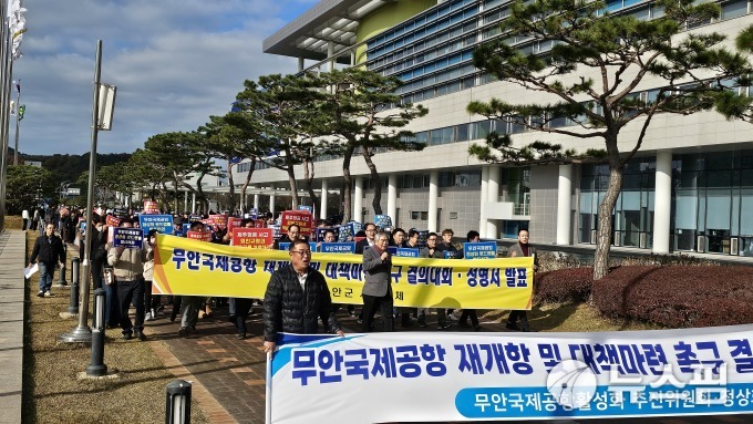 무안국제공항활성화추진위원회와 무안국제공항정상화협의체, 무안군 사회단체 등은 26일 성명을 내고 "전남도는 공항 정상화를 위한 구체적 로드맵을 즉시 제시해야 한다"며 "도민은 더 이상 '기다려 달라'는 말로 설득할 수 없다"고 밝혔다.