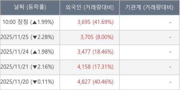 [표] 외국인ㆍ기관 순매매량 (단위 주)