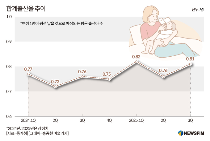 3분기 합계출산율은 0.81명으로 전년 동기보다 0.04명 증가했다. 직전 2분기(0.76명)와 비교해도 0.05명 늘었다.